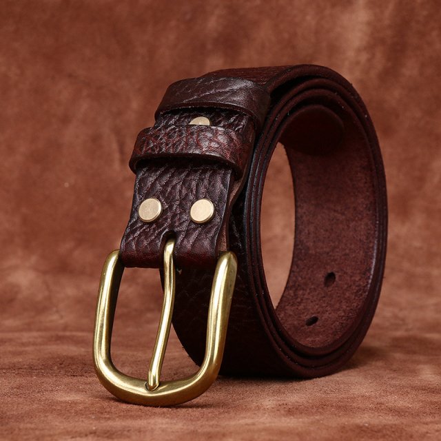 Upgrade your daily wear with a belt that does more than just hold up your jeans. This 1.5-inch wide genuine cowhide leather belt is the perfect blend of rugged quality and timeless style. Crafted from high-quality first-layer cowhide and finished with a durable stainless steel pin buckle, it’s built to last and made to impress. The leather is washed, antiqued, and hand-punched for an authentic, slightly vintage look that never goes out of style.
